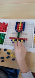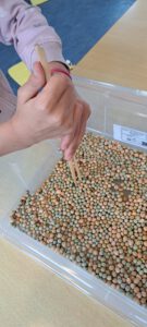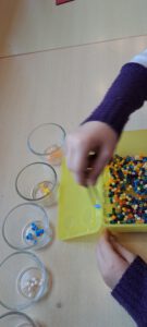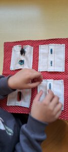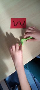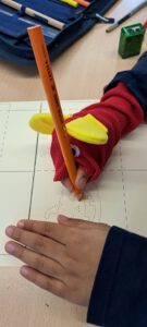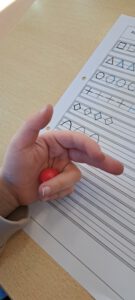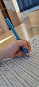 Denn starke Finger und Hände sind gut für Alltagsfähigkeiten wie Verschlüsse und Knöpfe öffnen und schließen, schneiden, malen und natürlich vor allem für das Schreiben mit der Hand. Damit wir den Stift sicher im Griff haben, üben wir mit verschiedenen Materialien das Greifen und Hantieren. Wir kneten, reißen, schrauben, stecken, prickeln, drücken, biegen, zerknüllen, sortieren, und hinterlassen Spuren auf verschiedenen Untergründen. Natürlich probieren wir auch unterschiedliche Schreibwerkzeuge aus und beschäftigen uns mit Formen und Linien. So wird mit viel Spaß und Kreativität das flüssige Schreiben zum Kinderspiel!