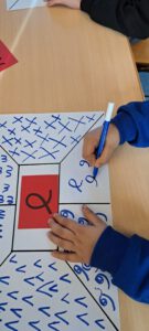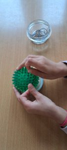 Hier machen Kinder aus Klasse 2a und 2b Fitness für die Hände!