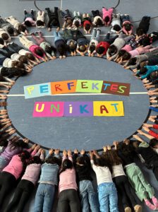 Die Goldbergschule äußert sich offen für Vielfalt und Individualität. Wir stehen ein für eine Gemeinschaft, welche sich für das einzelne Individuum ausspricht und dessen besonderen Merkmale hervorhebt. Trotz schwerer Zeiten darf nicht vergessen werden zusammenzuhalten und die Personen um sich herum wertzuschätzen, als auch ihre einzigartigen Fähigkeiten wahrzunehmen. Die OGS der Franzstraße gestaltete dazu das Bild, Kinder sind perfekte Unikate!